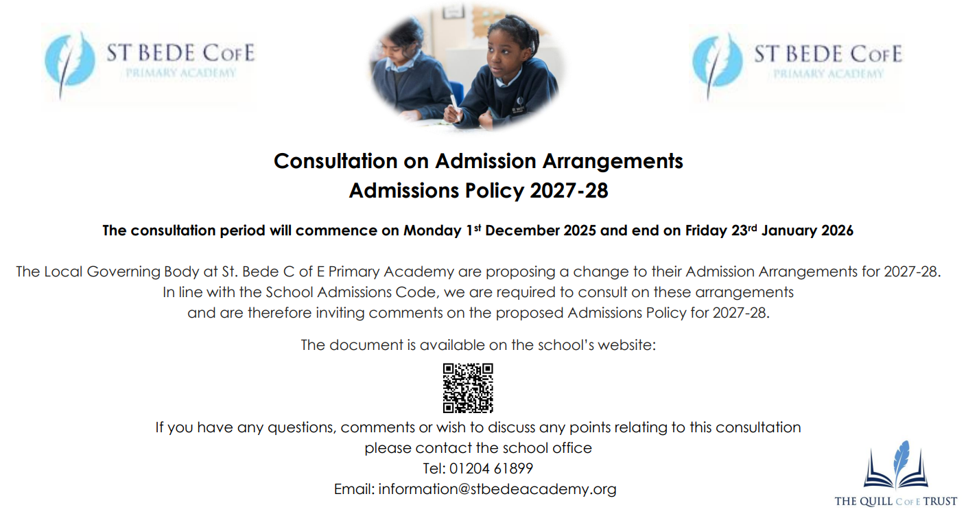 We are committed to ensure that all our children leave St. Bede having developed the lifelong skills of positivity, resilience and independence. We foster a love of learning and a determination to succeed.